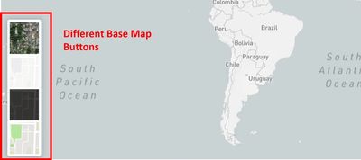 The wastewater heat maps have four different base maps available for you to choose from. These base maps can be changed at any time by simply clicking on one of the four tiles shown in the bottom left corner of the map window.